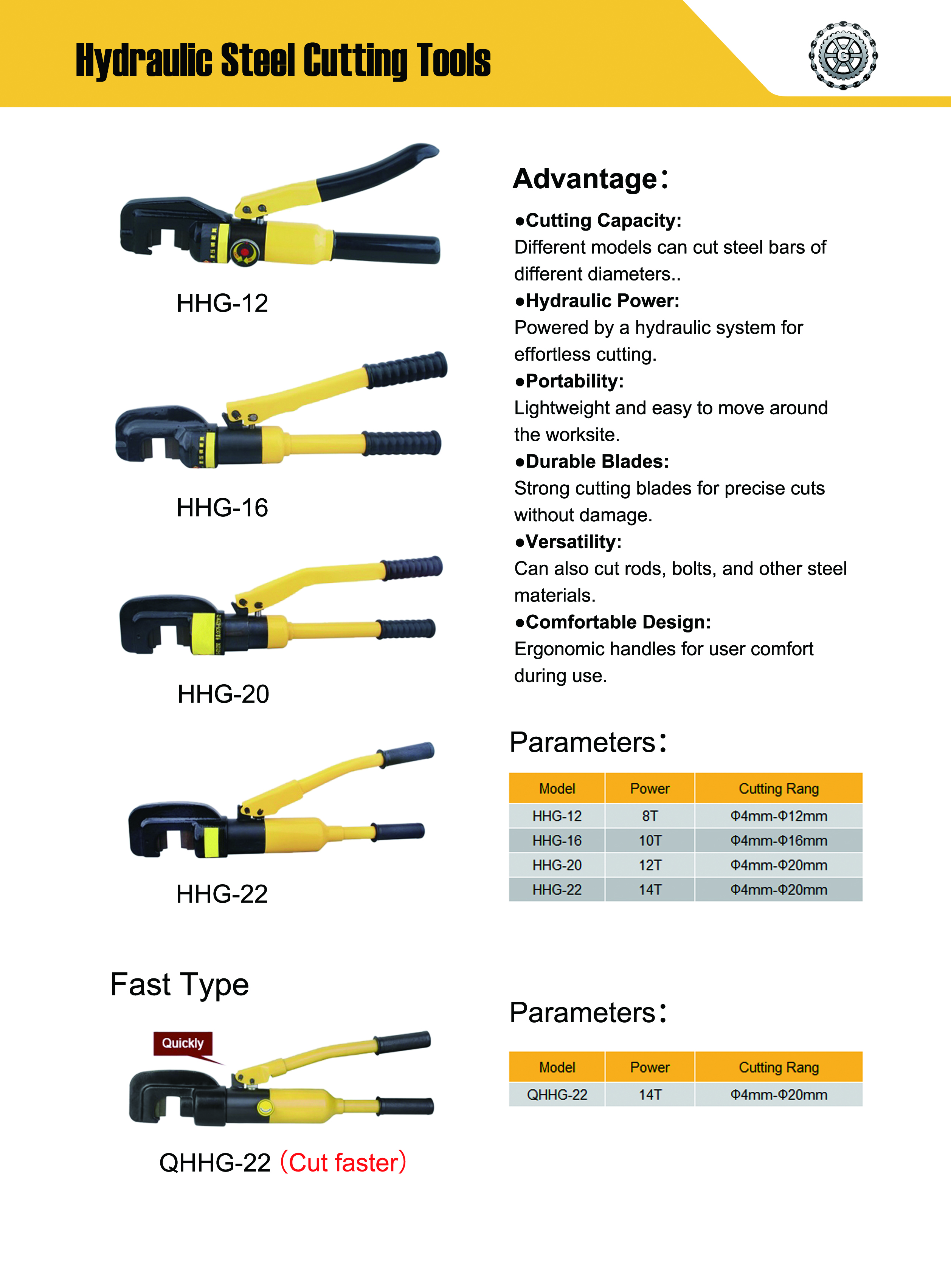 Is iad seo na gnéithe bunúsacha a dhéanann gearrthóirí rebar hiodrálacha uirlisí éifeachtacha agus éasca le húsáid chun rebar cruach agus ábhair eile a ghearradh i dtascanna éagsúla tógála agus miotalóireachta.